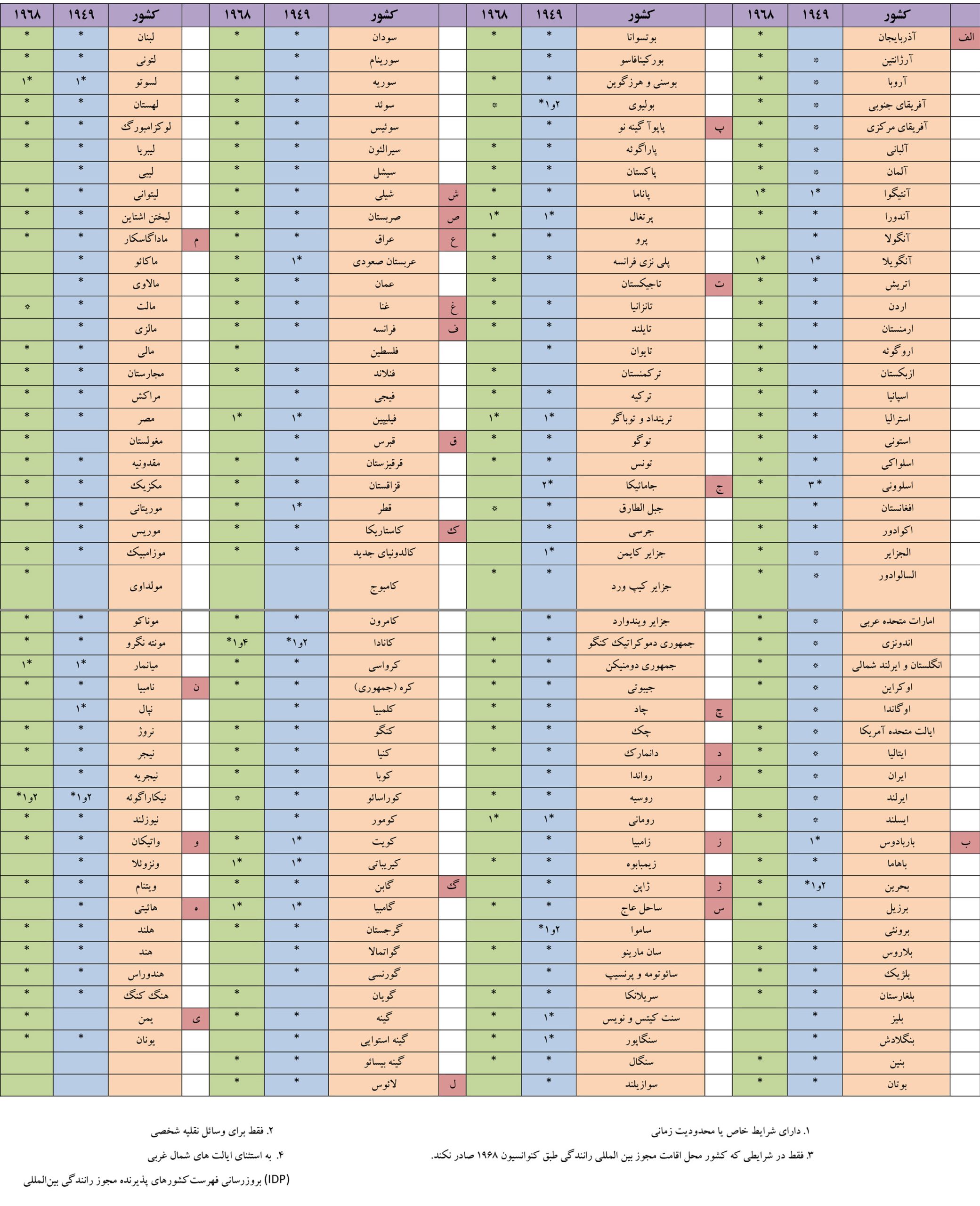 لیست کشورهای پذیرنده گواهینامه بر اساس کنوانسیون های 1949 و 1968: